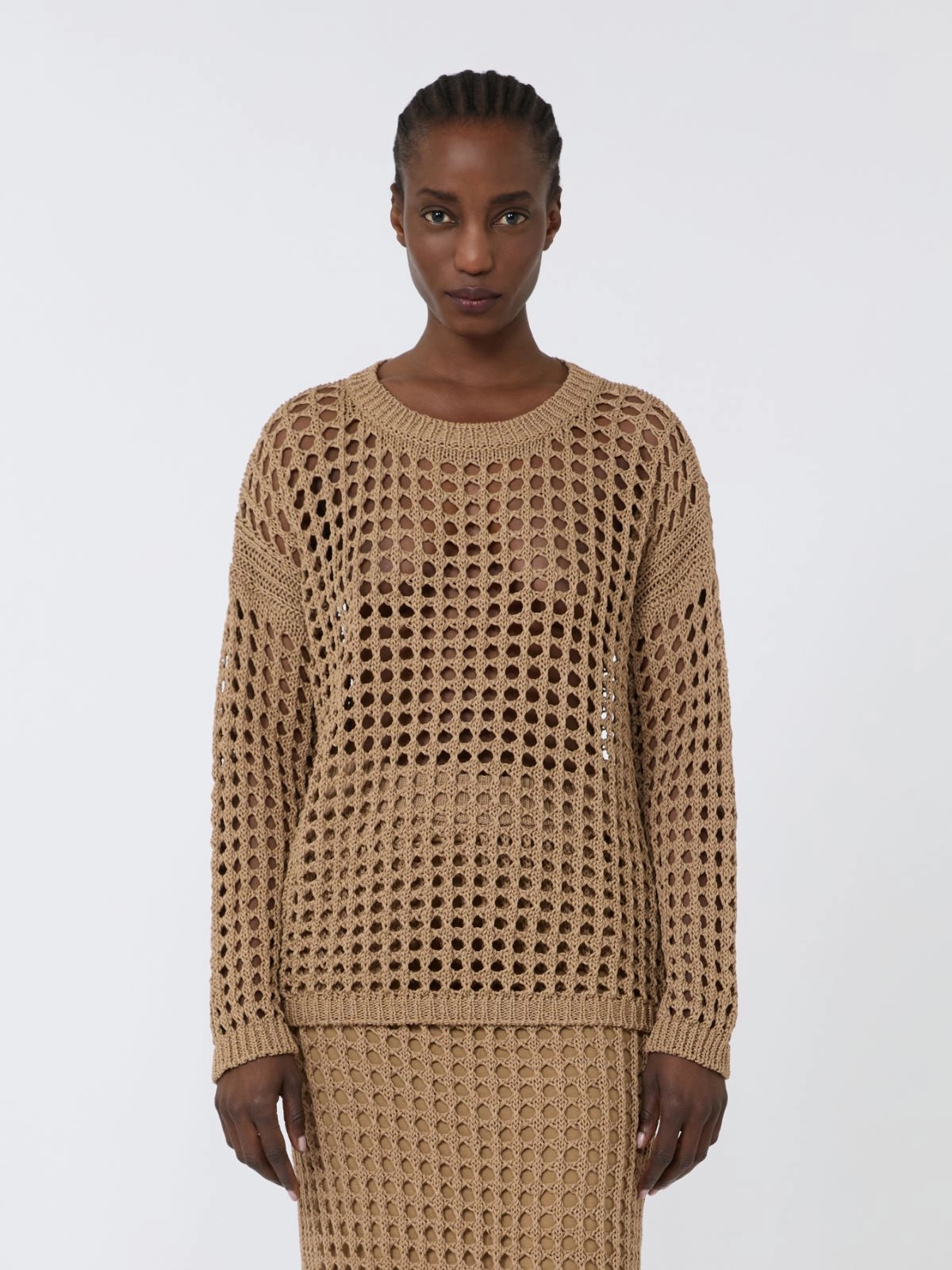 Long-sleeved jumper, featuring a sheer-effect mesh knit.